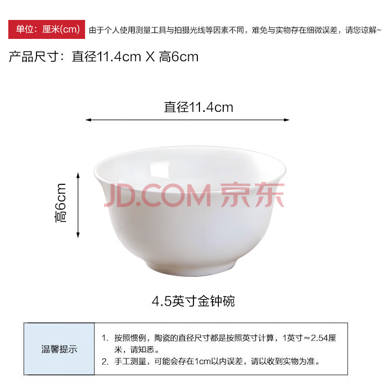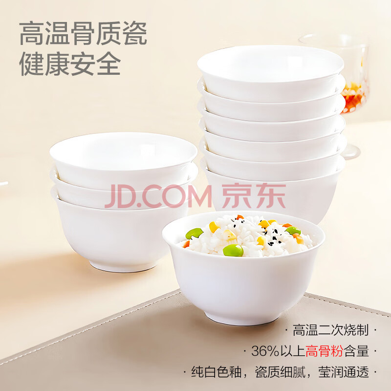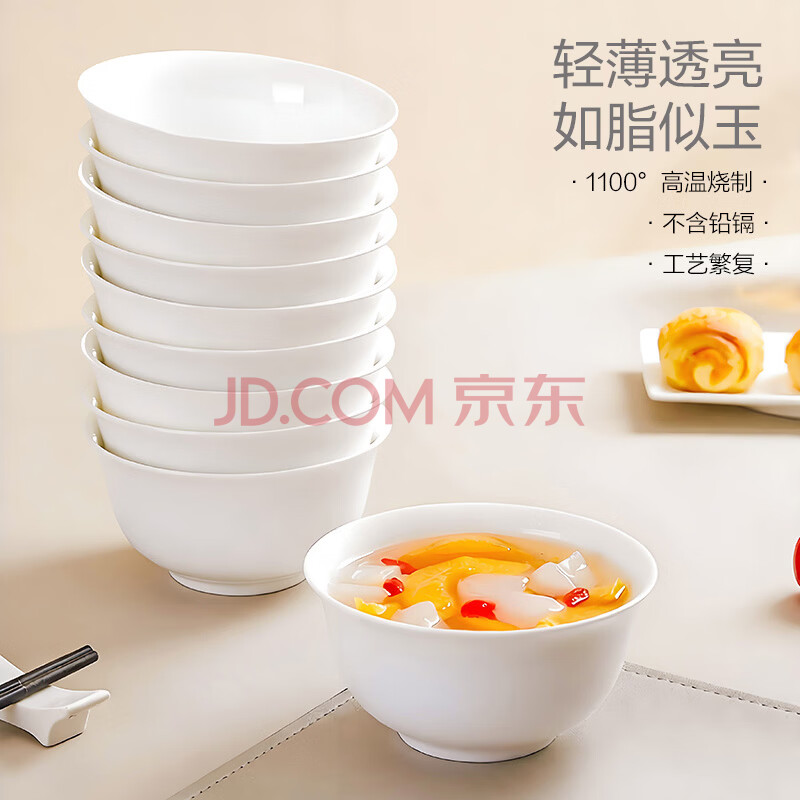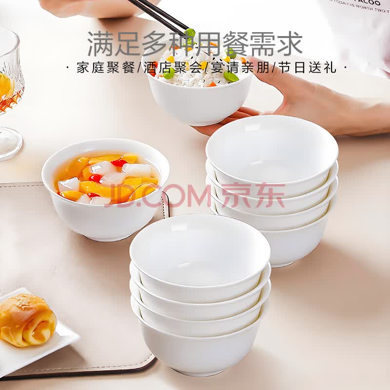 商品相册:斯凯绨(Sky Top)米饭碗骨瓷小汤碗纯白陶瓷家用酒店餐具套装4.5英寸金钟碗10件第