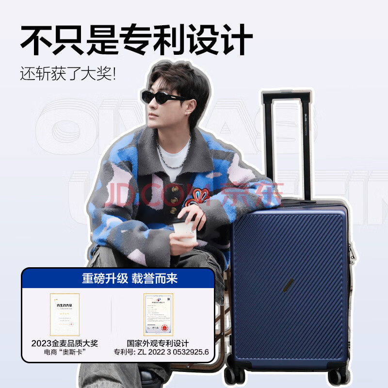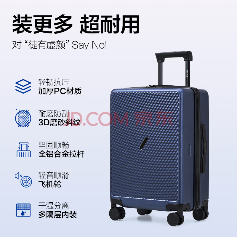 商品相册:爱华仕斜杠青年行李箱24英寸大容量拉杆箱男耐用托运旅行箱女密码箱子蓝第