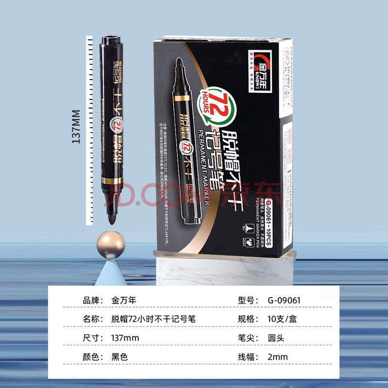 商品相册:金万年金万年脱帽不干黑色油性记号笔 物流大头笔 箱头专用标记笔10支/盒 G-09061-001第
