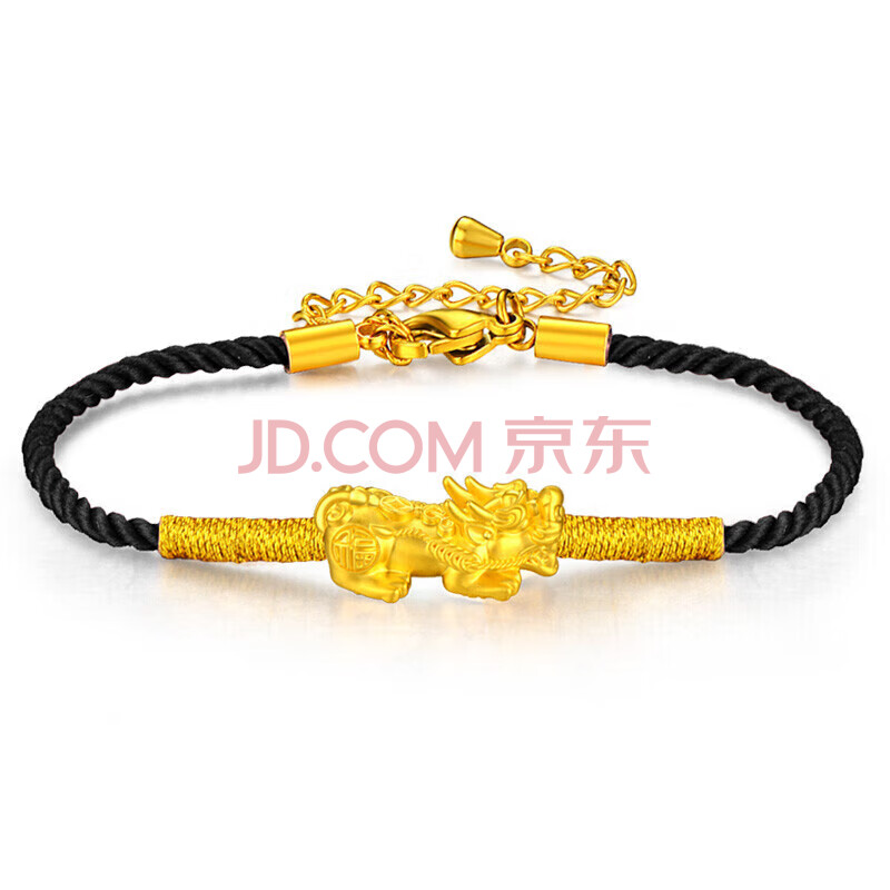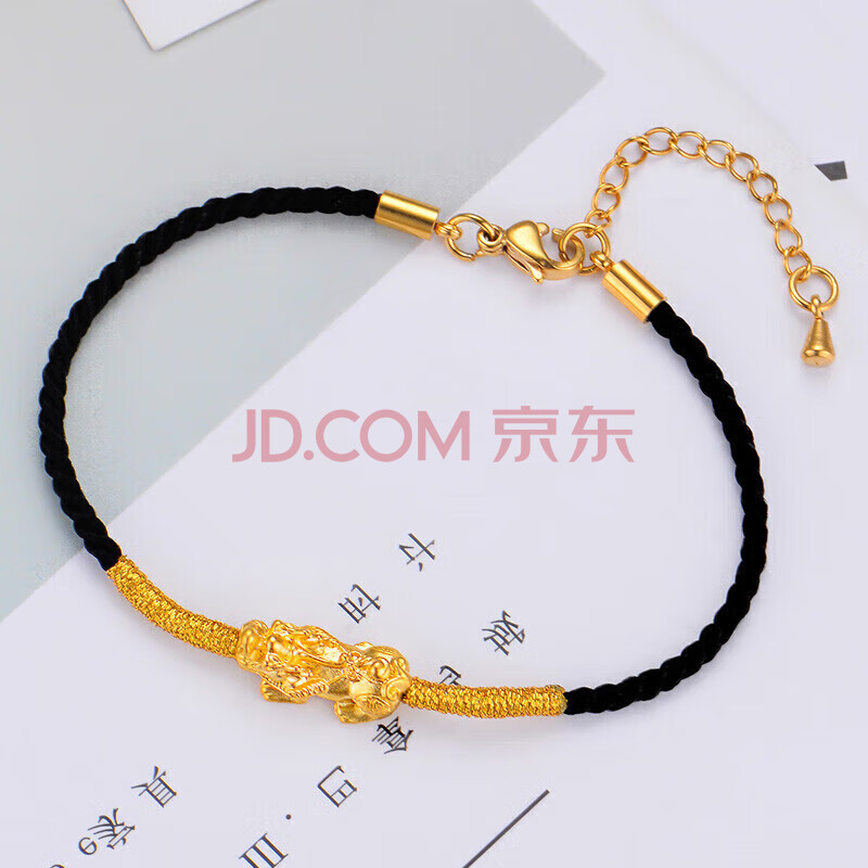 商品相册:蒂蔻(Tico)足金招财貔貅黄金转运珠手链男女3D硬金编织黑绳手饰品生日礼物第