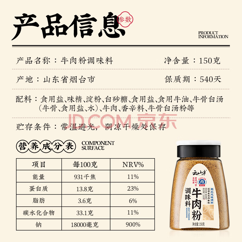 商品相册:云山半韩国牛肉粉调味料150g韩餐家用厨房韩式调料品炒菜熬汤増鲜第