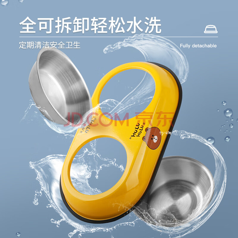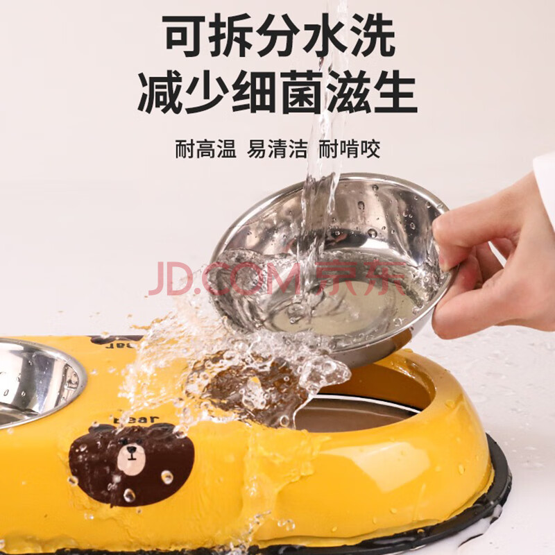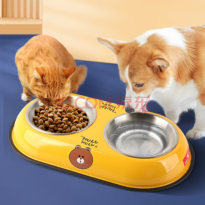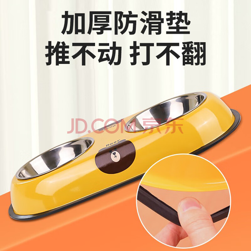 商品相册:HELLOJOY狗碗狗盆猫碗不锈钢双碗猫食盆狗饭盆防打翻双碗 黄色小号第