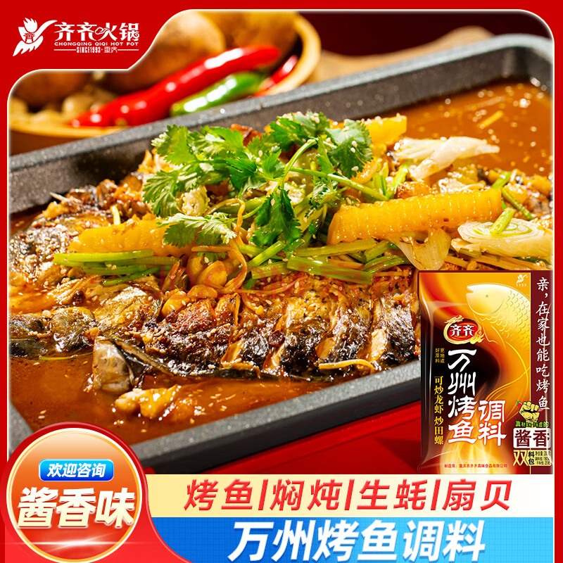 商品相册:齐;齐齐餐饮重庆万州烤鱼调料纸包烤鱼料200g 酱香第
