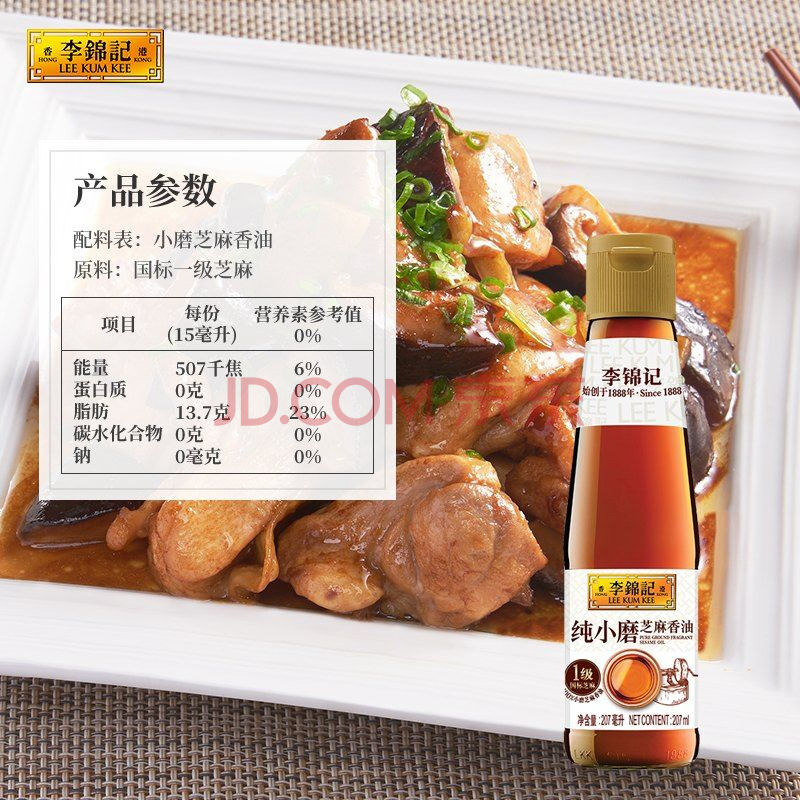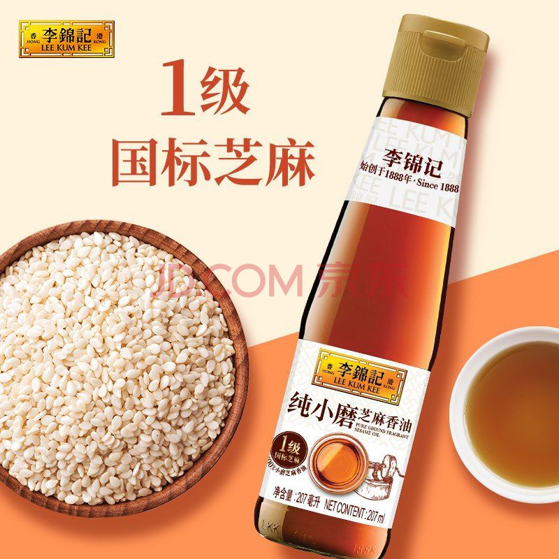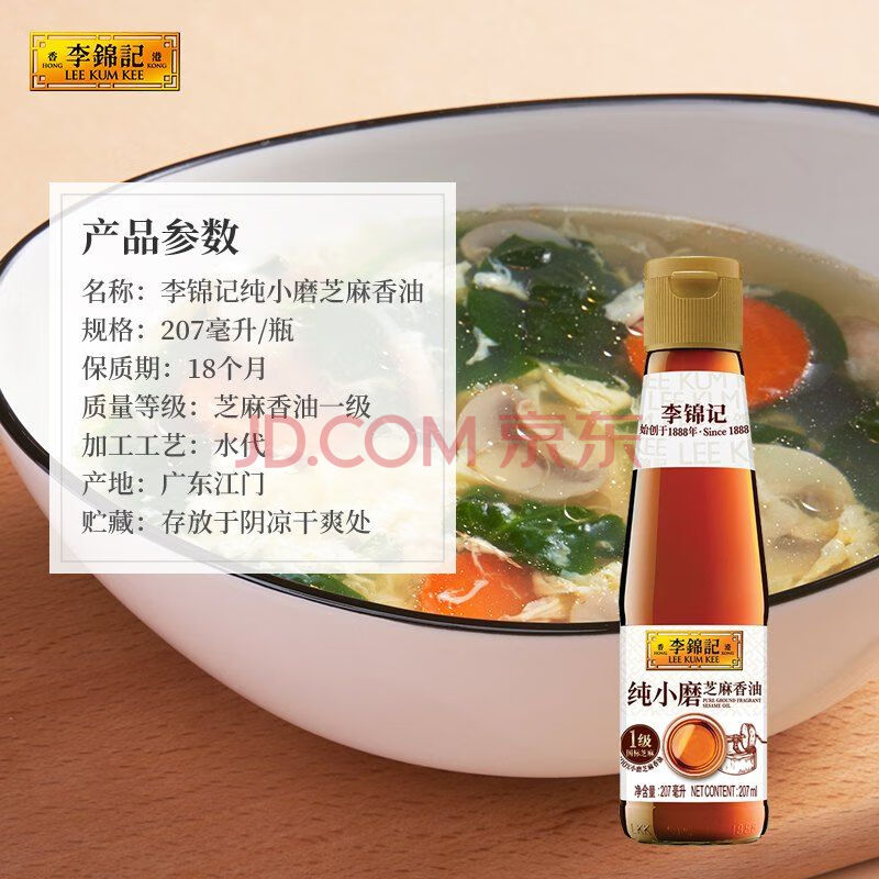 商品相册:李锦记 纯小磨芝麻香油207ml【一级】100%芝麻香油 火锅油碟凉拌蘸料第