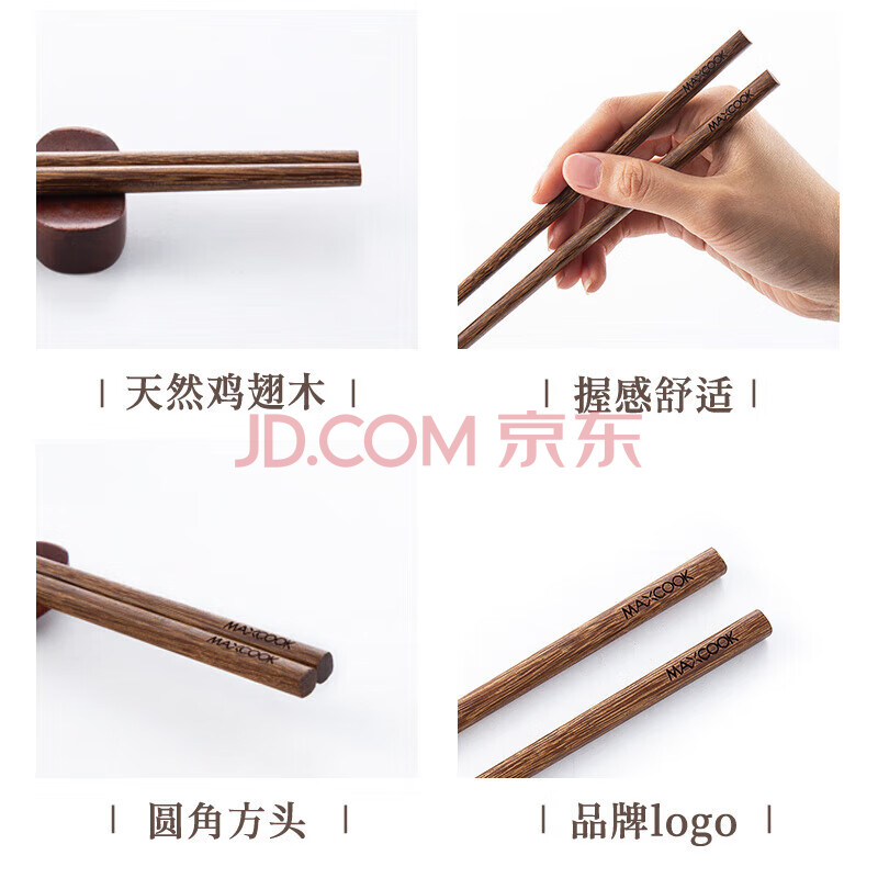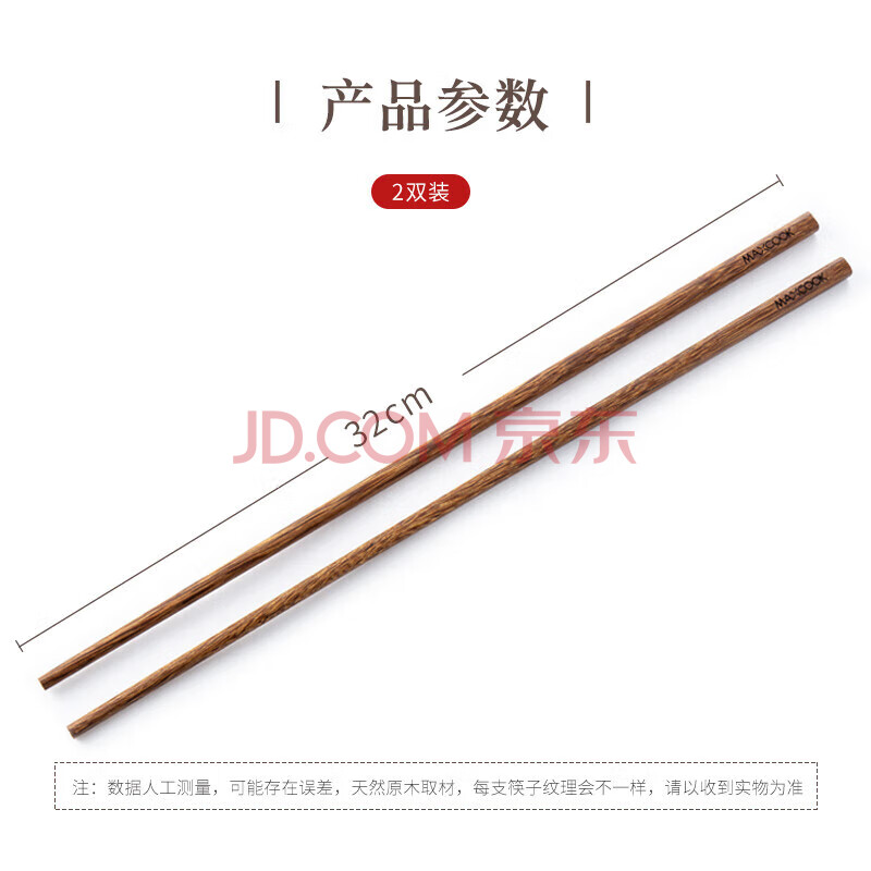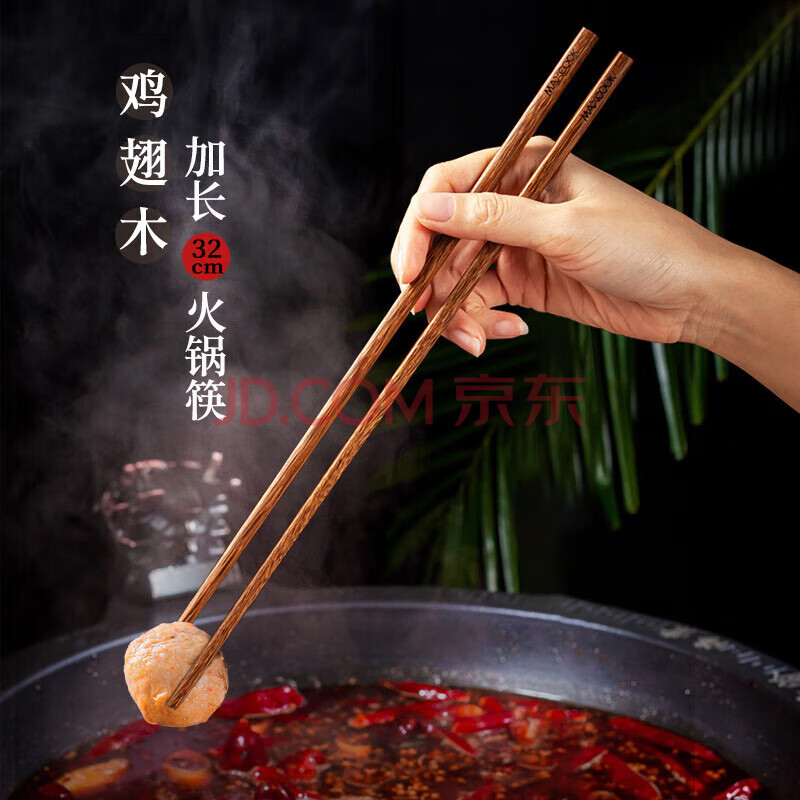 商品相册:美厨(MAXCOOK)筷子 天然无蜡鸡翅木筷子煎炸火锅筷子两双装32cm加长 MCPJ184第