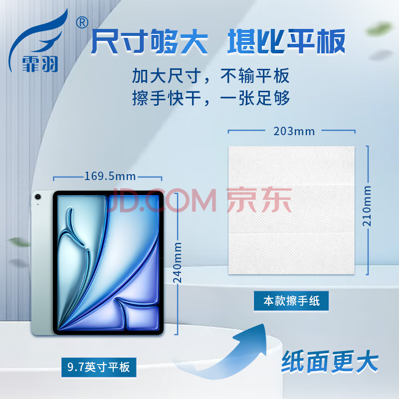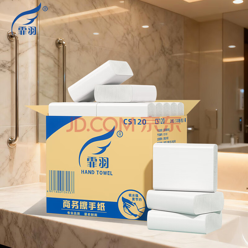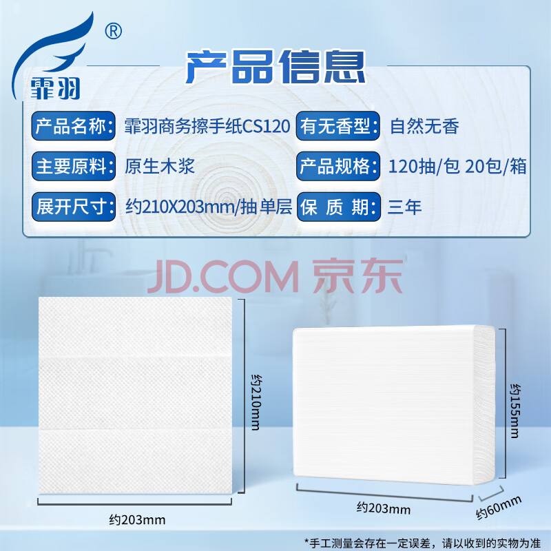 商品相册:霏羽商用商务擦手纸 1层120抽*20包L码吸水吸油整箱干手抹手纸CS120第