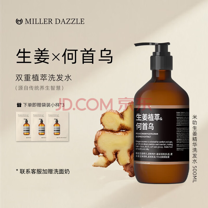 商品相册:米叻(MILLER DAZZLE)生姜洗发水男士何首乌侧柏叶洗发露姜汁洗头膏护发控油去屑洗发露第