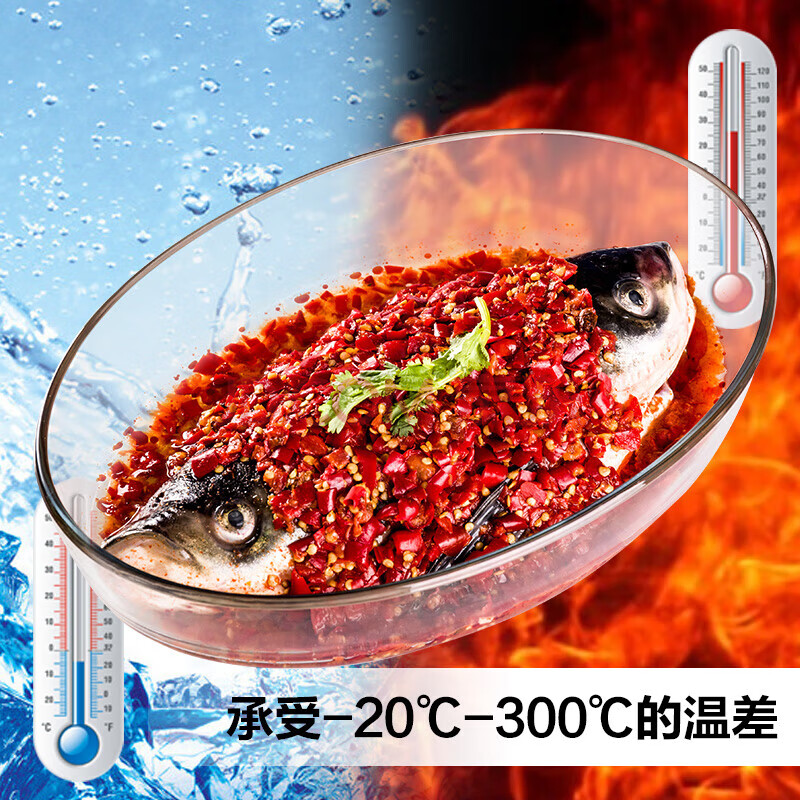 商品相册:格娜斯耐热玻璃蒸鱼盘子家用椭圆形透明玻璃烤盘烤箱用微波炉专用2.4L第