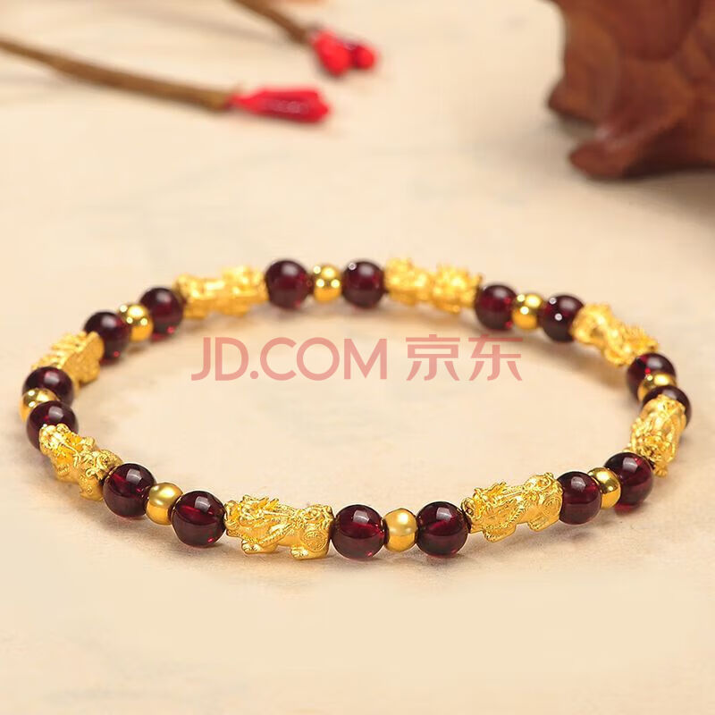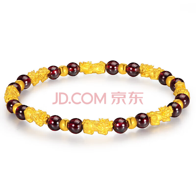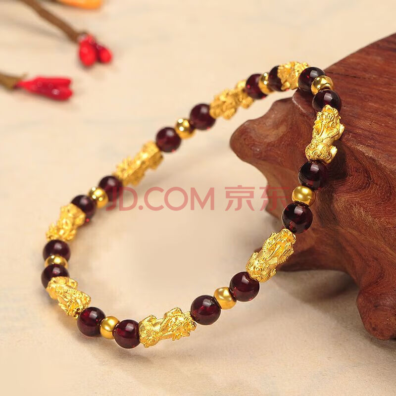 商品相册:蒂蔻(Tico)八方来财足金招财貔貅黄金转运珠手链女3D金石榴石手串生日礼物第
