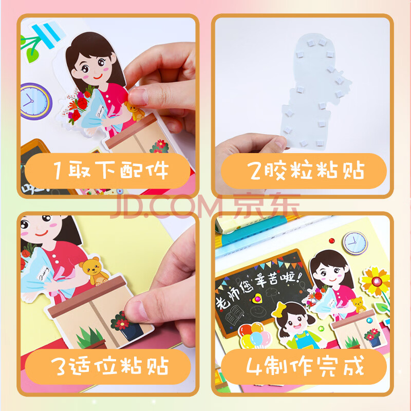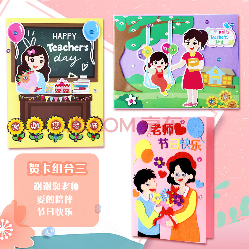 商品相册:法拉蒙 faramon 教师节贺卡3个装可diy立体祝福卡手工制作送老师节日礼物幼儿园小学生花束感恩贺卡 组合三第
