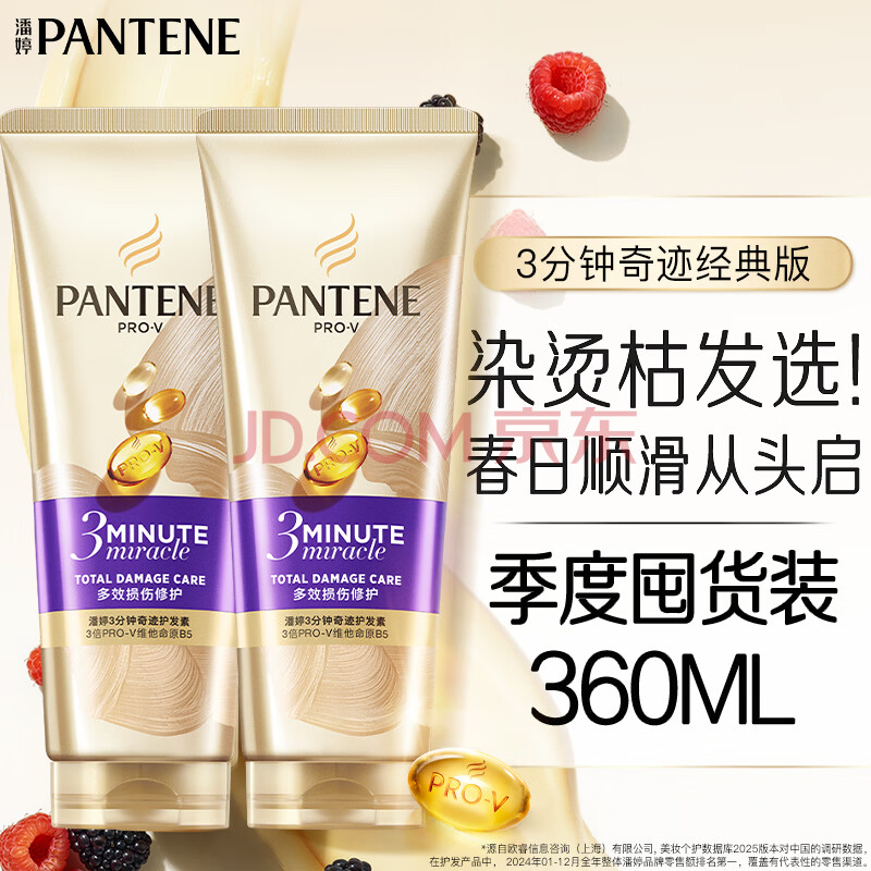 商品相册:潘婷3三分钟奇迹护发素多效损伤修护180ml*2京东自营滋养柔顺留香第