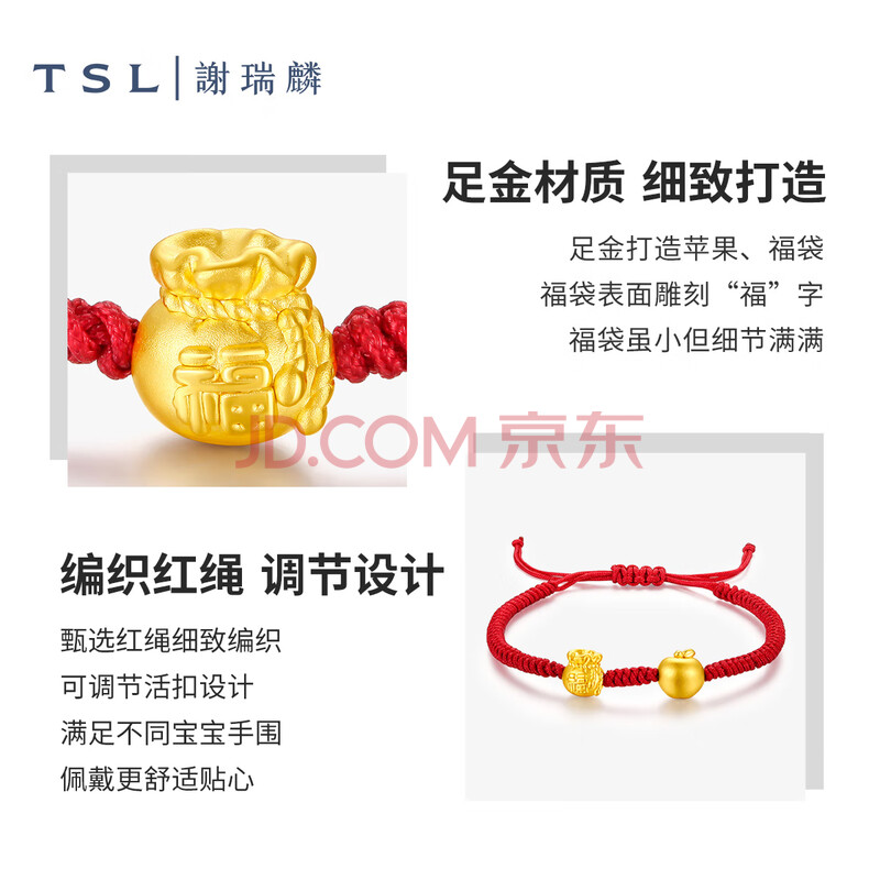 商品相册:谢瑞麟(TSL)黄金转运珠苹果福袋3D硬金转运珠手链手串女XI369第