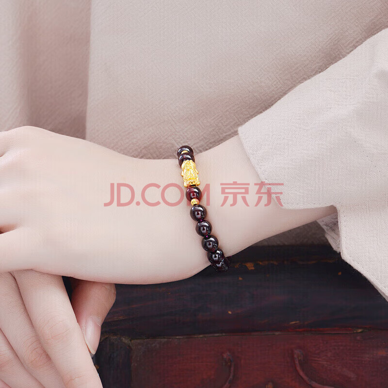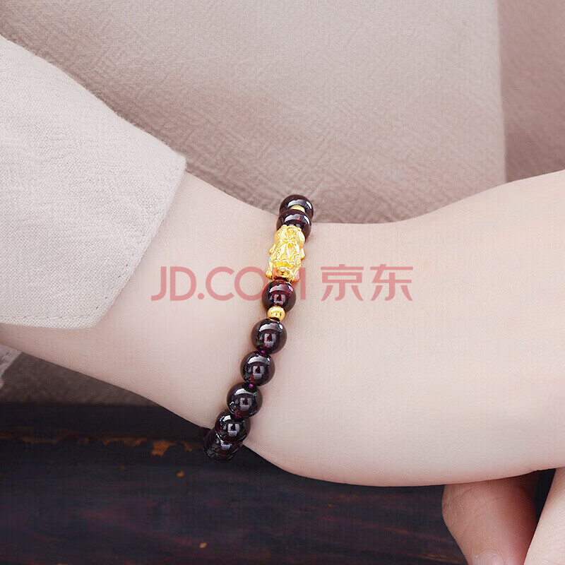 商品相册:蒂蔻(Tico)足金招财貔貅黄金转运珠手链女士3D硬金石榴石手串饰品生日礼物第