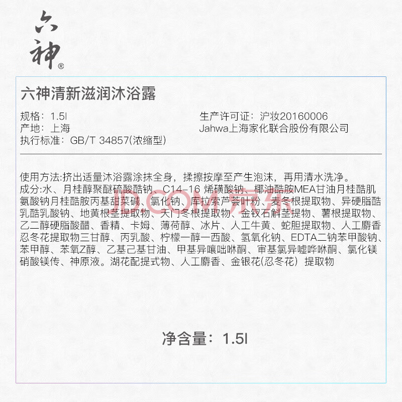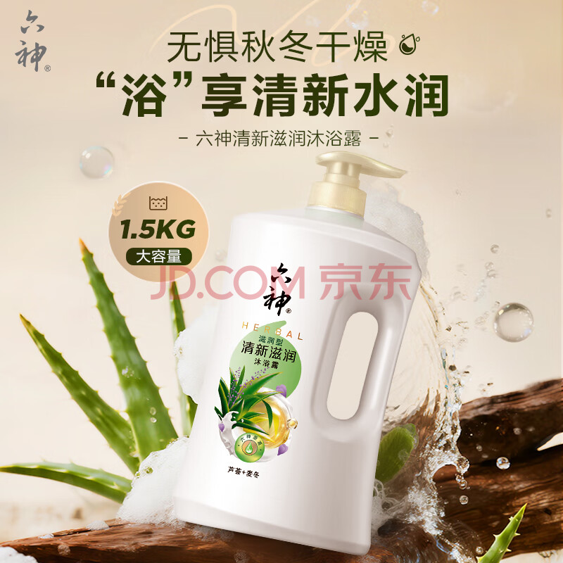 商品相册:六神清新滋润沐浴露1.5kg 芦荟草本滋养肌肤 持久留香 男女士通用第
