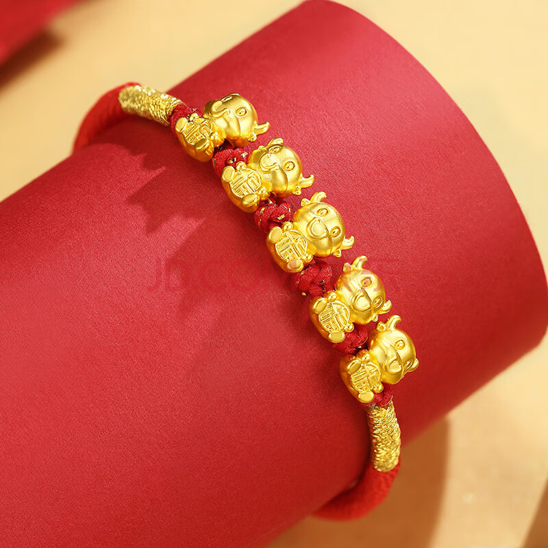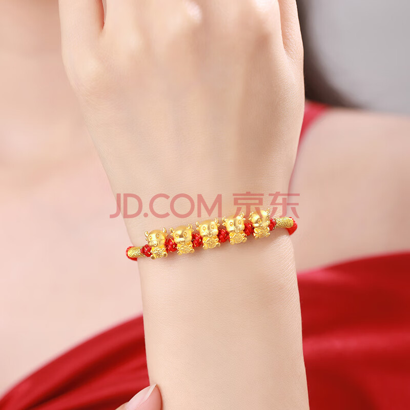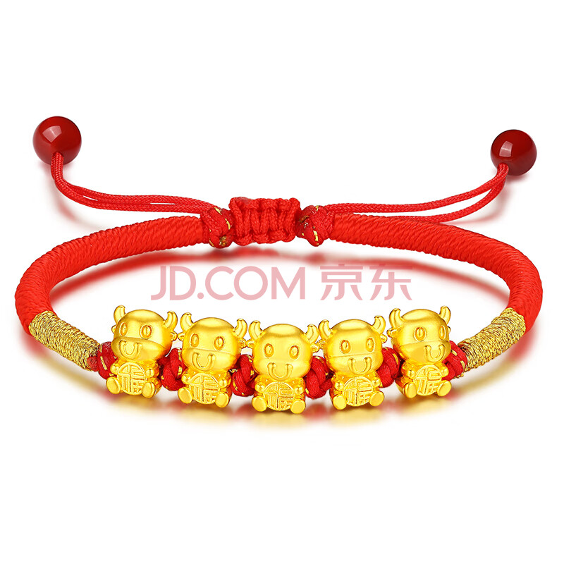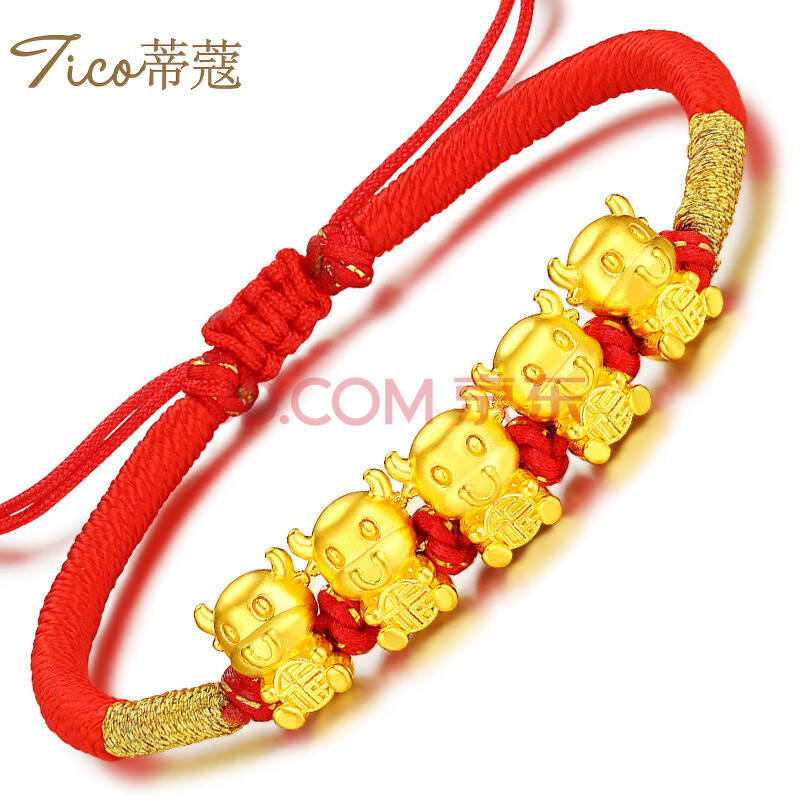 商品相册:蒂蔻(Tico)生日礼物本命年足金生肖五福牛黄金转运珠手链编织红绳5D金牛第1张/共5