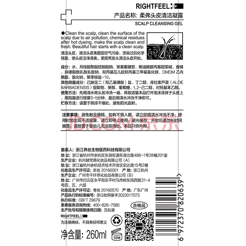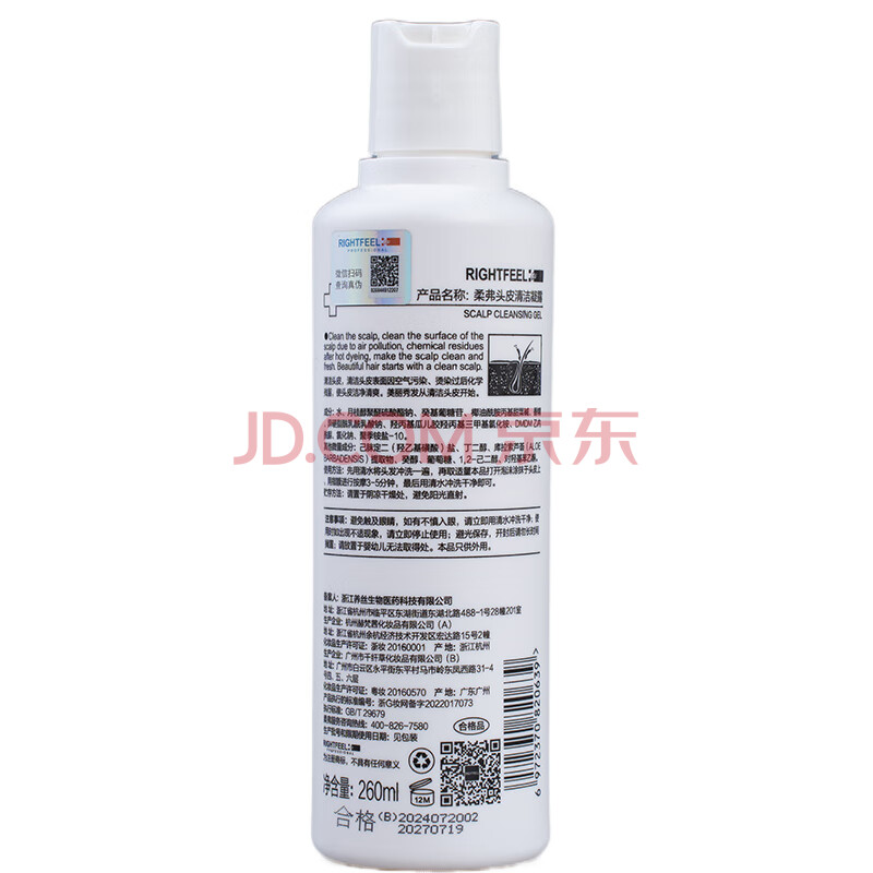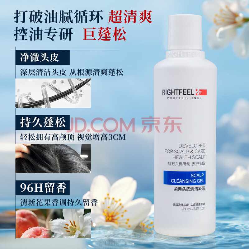 商品相册:柔弗(RIGHTFEEL)头皮清洁凝露260ml净澈头皮油脂横扫化学染烫残留去油蓬松洗发水第