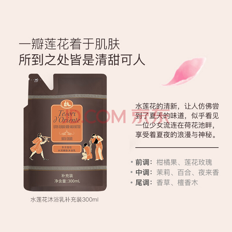 商品相册:东方宝石水莲花香氛沐浴露500ml+300ml家庭补充袋装持久留香滋润沐浴乳液第1张/共8