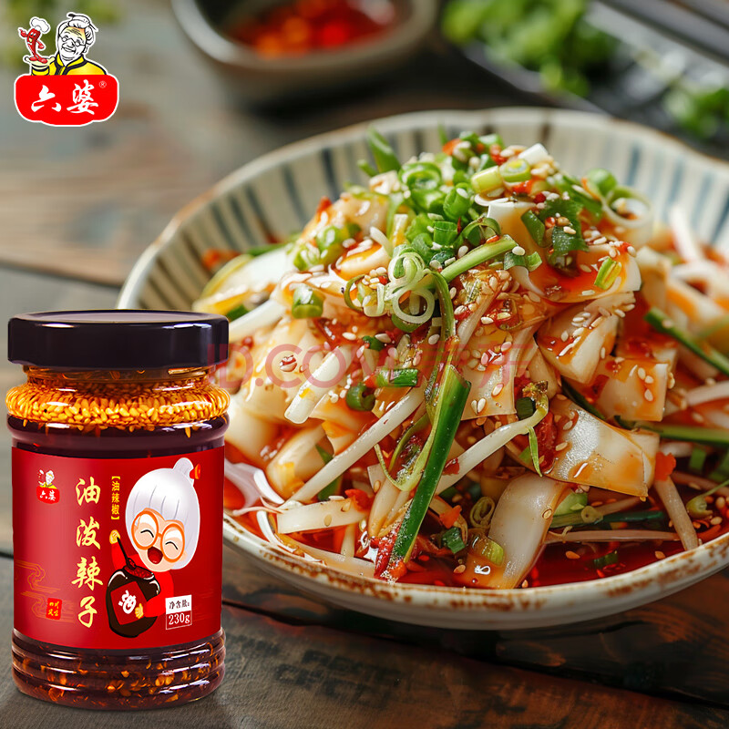 商品相册:六婆油泼辣子230g/瓶 四川红油辣子熟油辣椒油不辣商用家用凉拌菜调料第