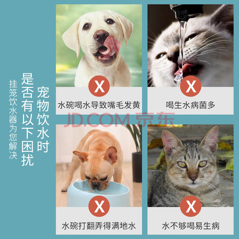 商品相册:汪野君悬挂式猫狗饮水器饮水机滚珠式不湿嘴喂水器挂笼宠物用品喝水器第