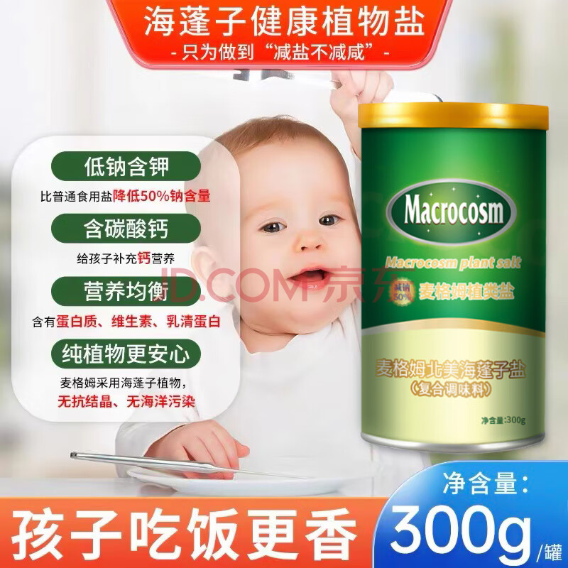 商品相册:Macrocosm宝宝盐300g儿童盐低钠高钾食用盐1岁辅食调料海蓬子盐减盐50%第