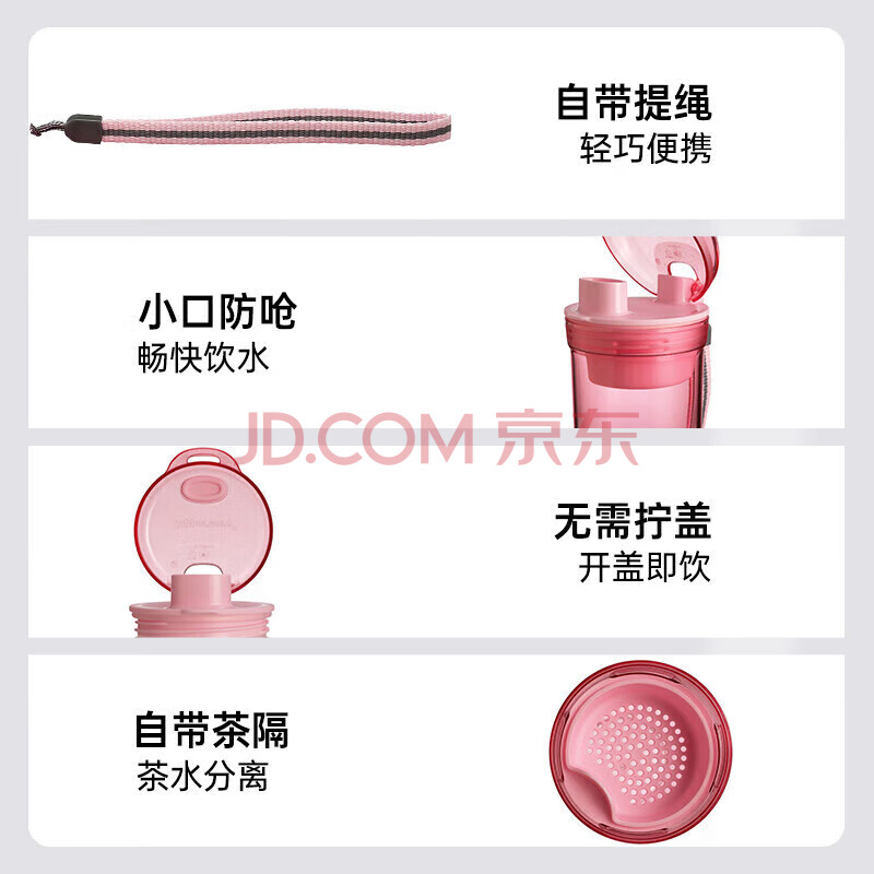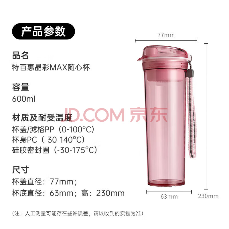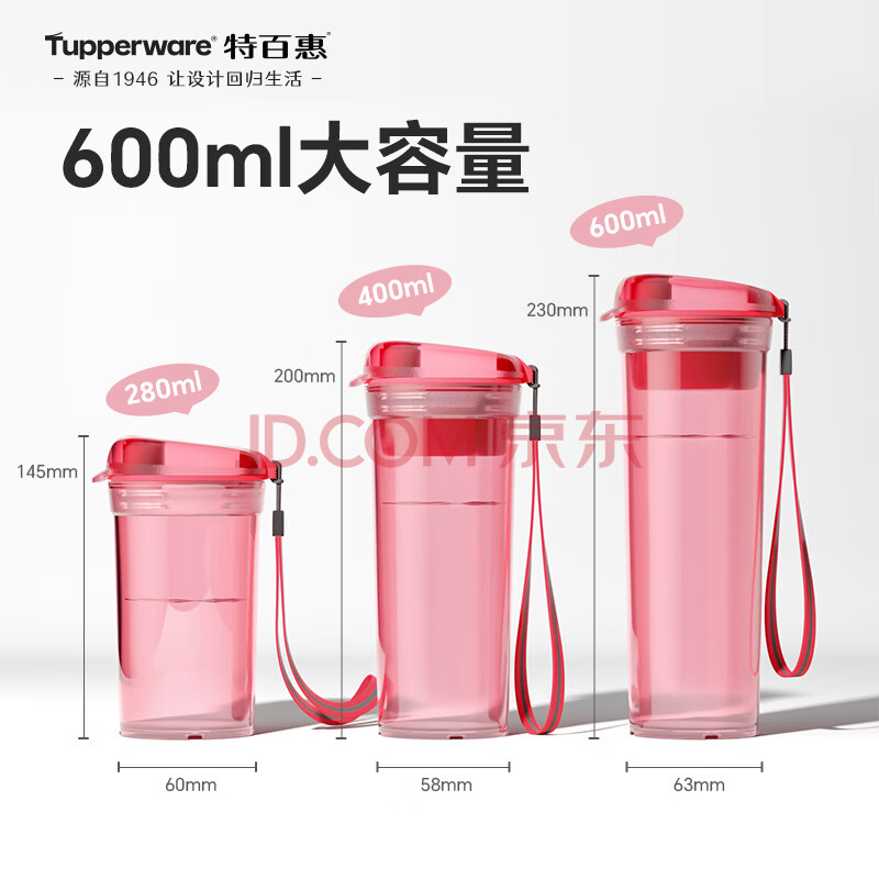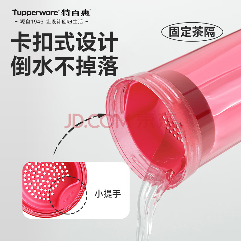 商品相册:特百惠(Tupperware)晶彩MAX塑料杯600ml 男女士学生运动水杯子大容量泡茶杯 宝石红第