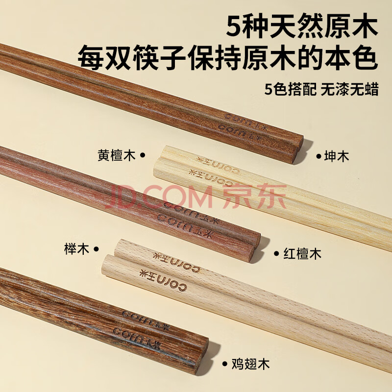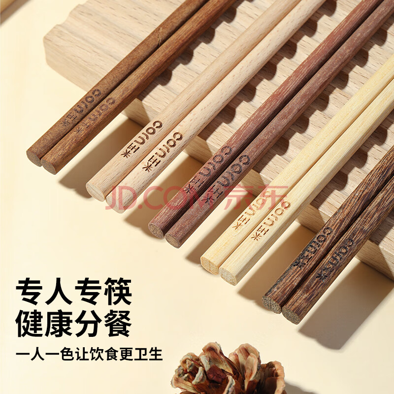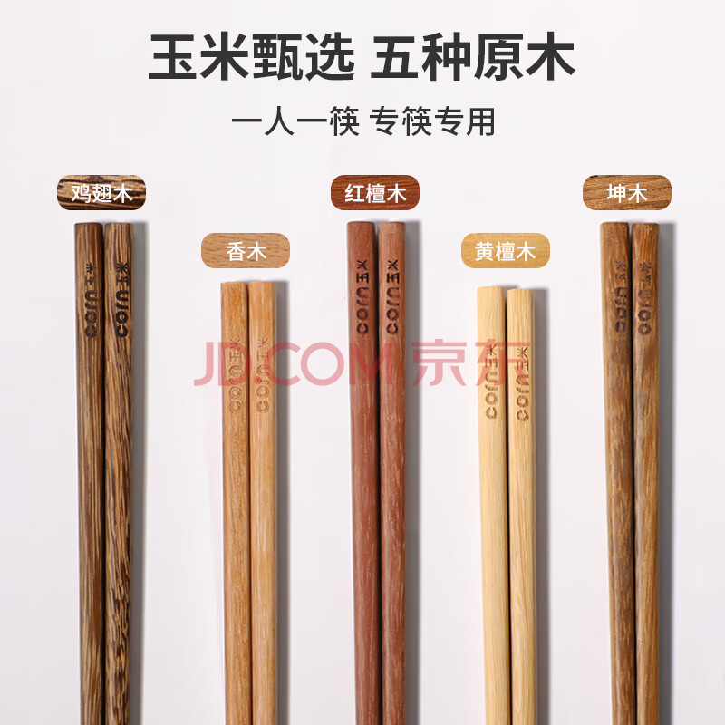 商品相册:玉米 实木筷子家用分人分用木头一人一筷家庭公筷分餐筷子套装一人食第