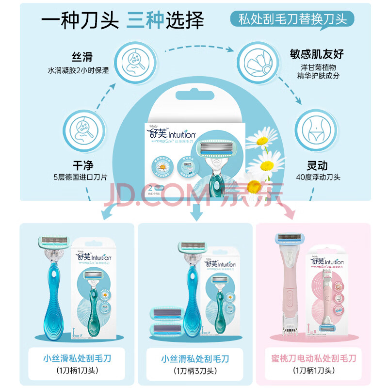 商品相册:舒适(Schick)舒芙小丝滑替换刀头【2个装】 女士私处刮毛刀脱毛 敏感肌适用第