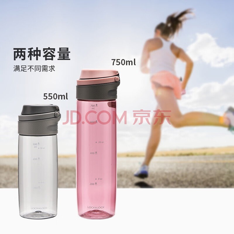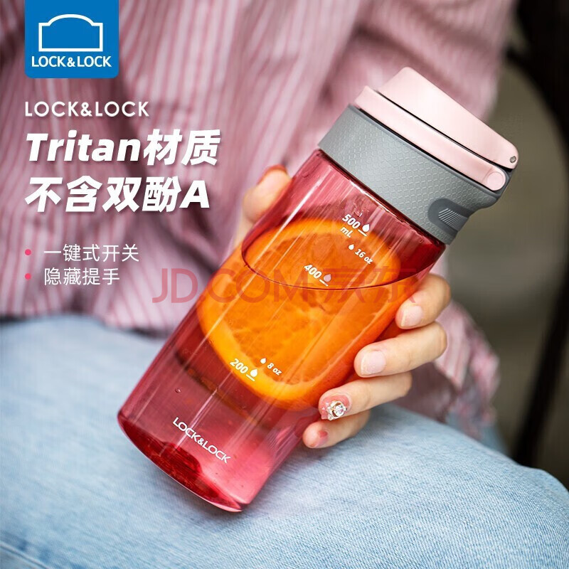 商品相册:乐扣乐扣(LOCK&LOCK)一键式运动水杯塑料杯户外便携水壶带把手刻度男女杯子粉色550ml第