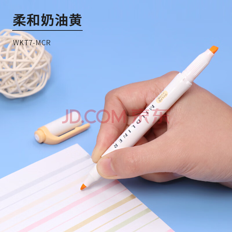 商品相册:斑马牌 (ZEBRA)双头柔和荧光笔 mildliner系列单色划线记号笔 学生标记笔 WKT7 柔和奶油黄第