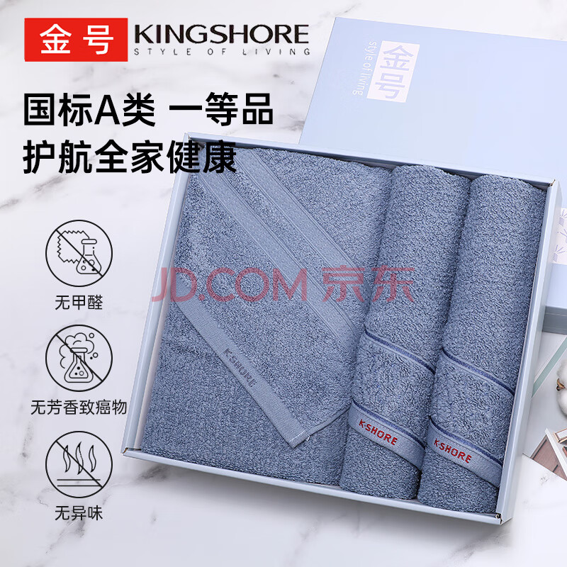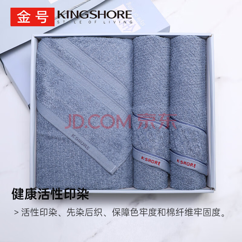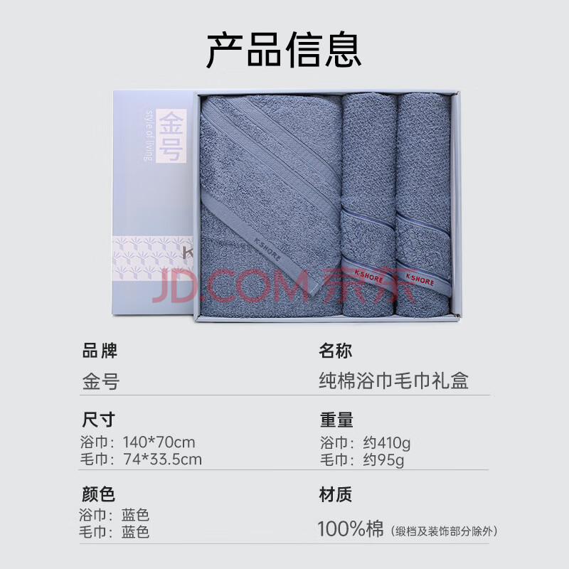 商品相册:金号毛巾礼盒 纯棉亲肤加厚毛巾+浴巾组合三件套礼盒 深海蓝色第