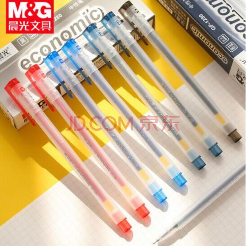 商品相册:晨光(M&G)文具GP1280/0.5mm中性笔全针管水笔黑蓝红色4色学生考试办公签字笔 蓝色12支/盒 3盒装第