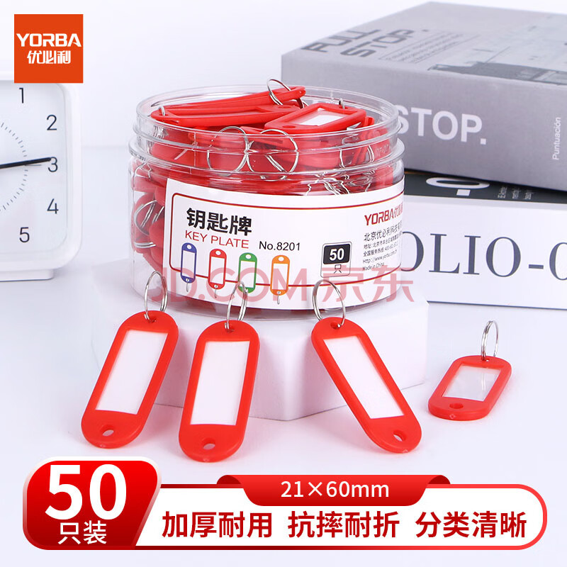 商品相册:优必利 钥匙牌 加厚手提钥匙号码牌标签分类管理钥匙扣 酒店宾馆房东大钥匙挂件 50只/桶 8201红色第1张/共5