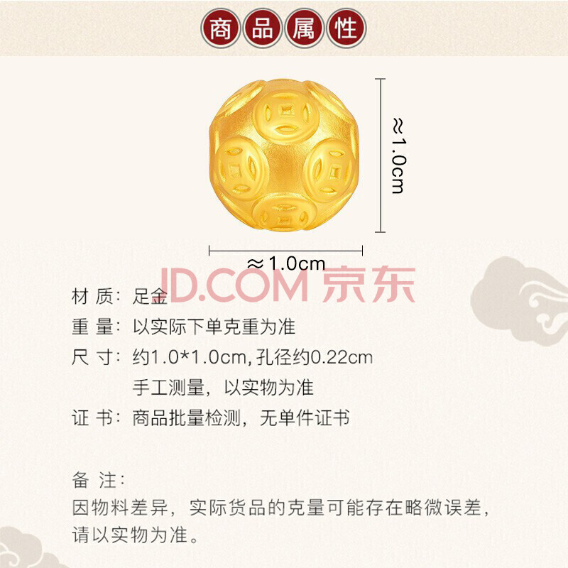 商品相册:老庙黄金转运珠铜钱钱币路路通硬金送女友送老婆生日礼物第