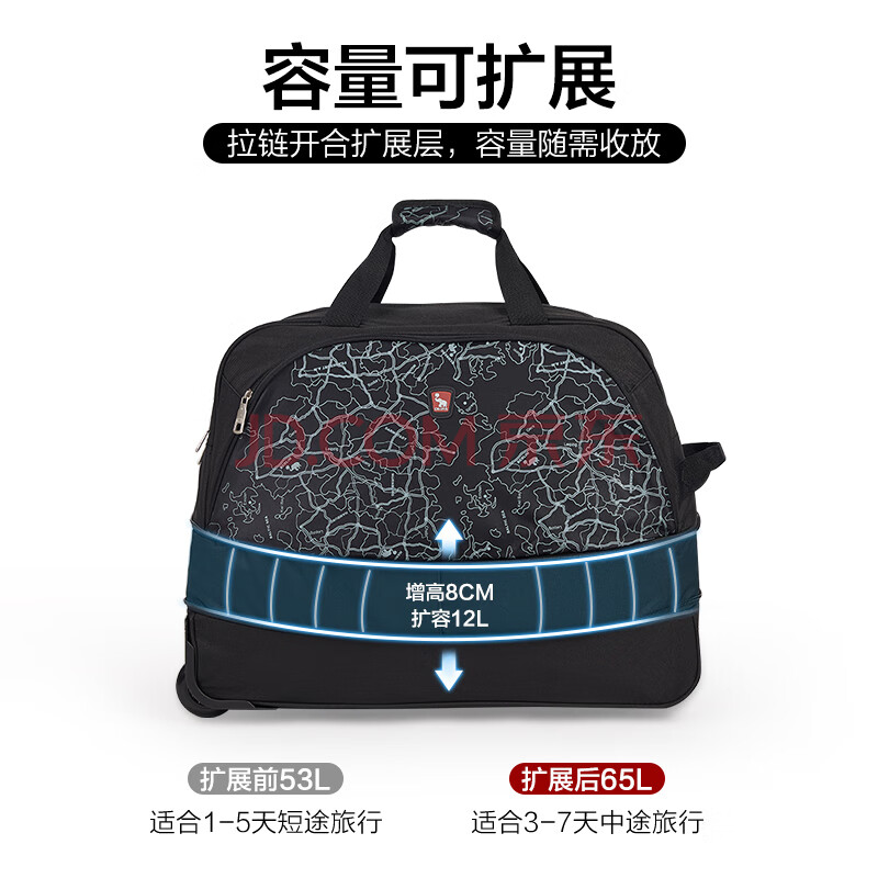 商品相册:爱华仕旅行包大容量拉杆包可扩展手提旅行袋折叠拉杆袋短途登机包黑色第