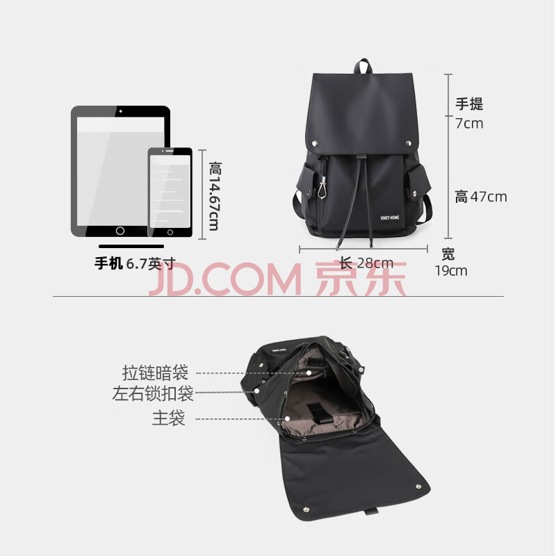 商品相册:viney双肩包男日系ins潮牌大容量休闲旅行包背包女潮酷书包初中大学生第