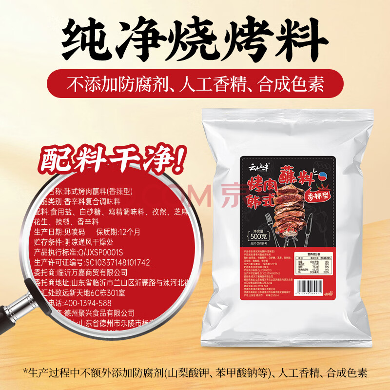 商品相册:云山半香辣烤肉蘸料撒料500g 淄博烧烤料韩式烤肉孜然辣椒面花生碎干碟第