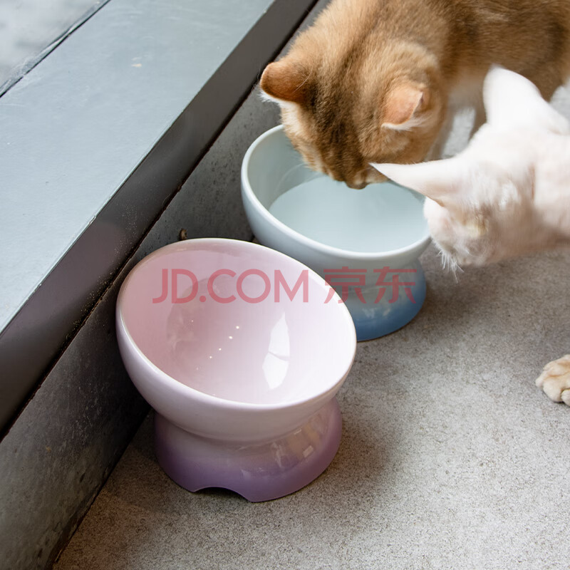 商品相册:乐优派猫碗陶瓷狗碗猫食盆狗盆宠物碗猫粮碗高脚防打翻猫咪用品 渐变紫第