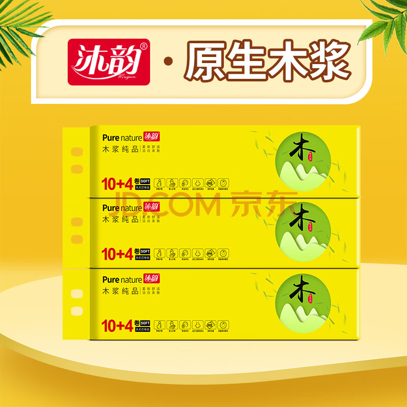 商品相册:沐韵 家用卫生间卷筒纸手纸 厕纸卫生纸 木浆纯品卷纸 56卷/箱 2箱/件第