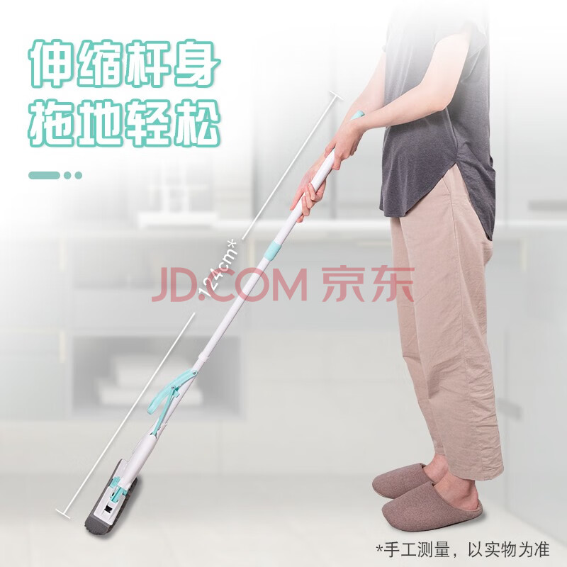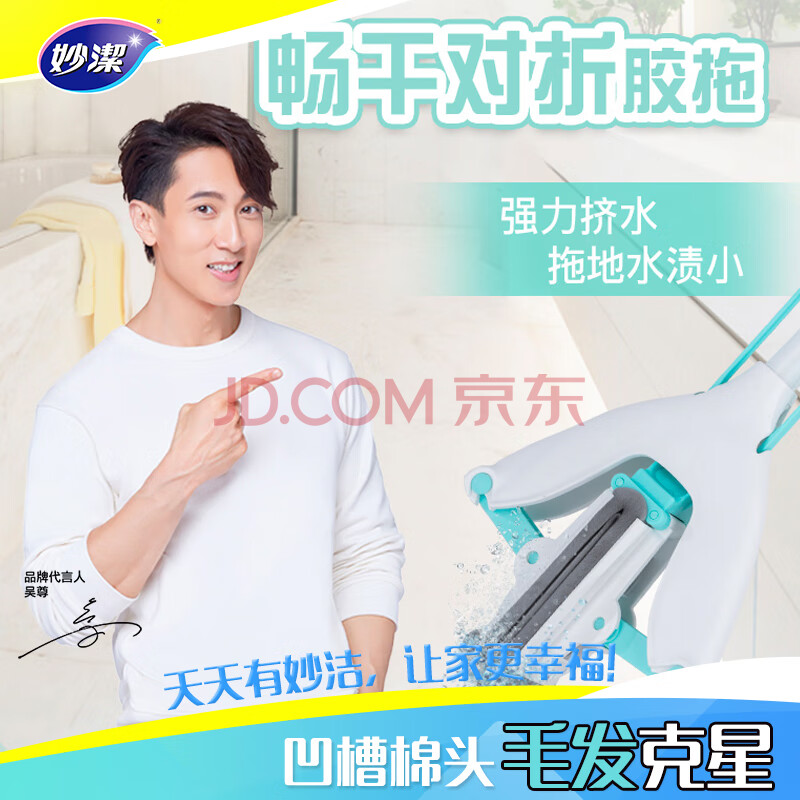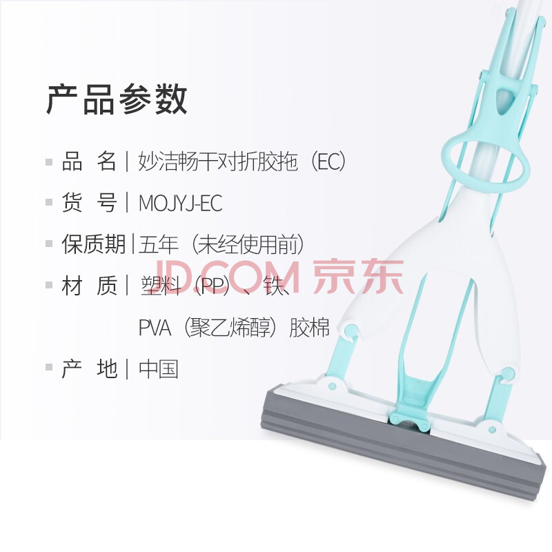 商品相册:妙洁胶棉拖把27cm杆长124共1头对折式懒人家用一拖净免手洗海绵吸水第