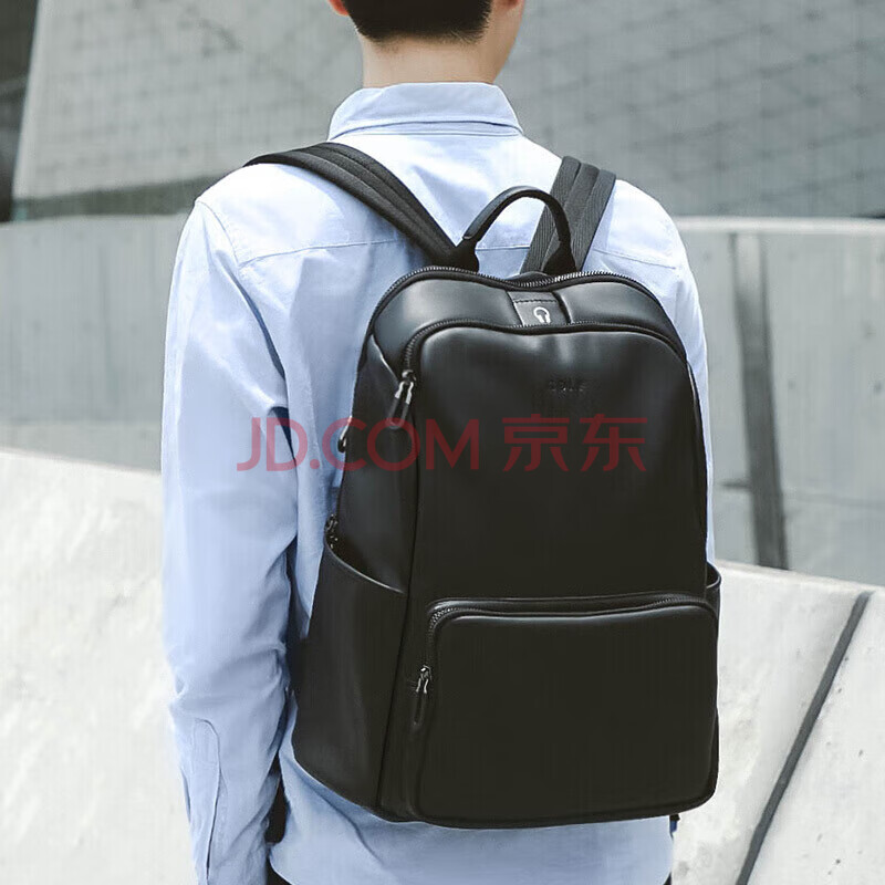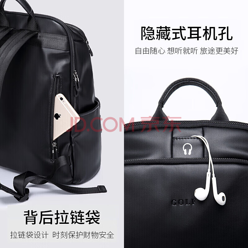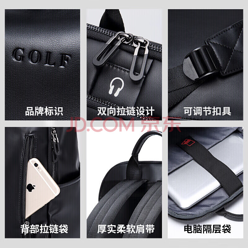 商品相册:高尔夫(GOLF)双肩包男士软皮商务休闲背包大容量学生书包电脑出差旅行包 黑色第