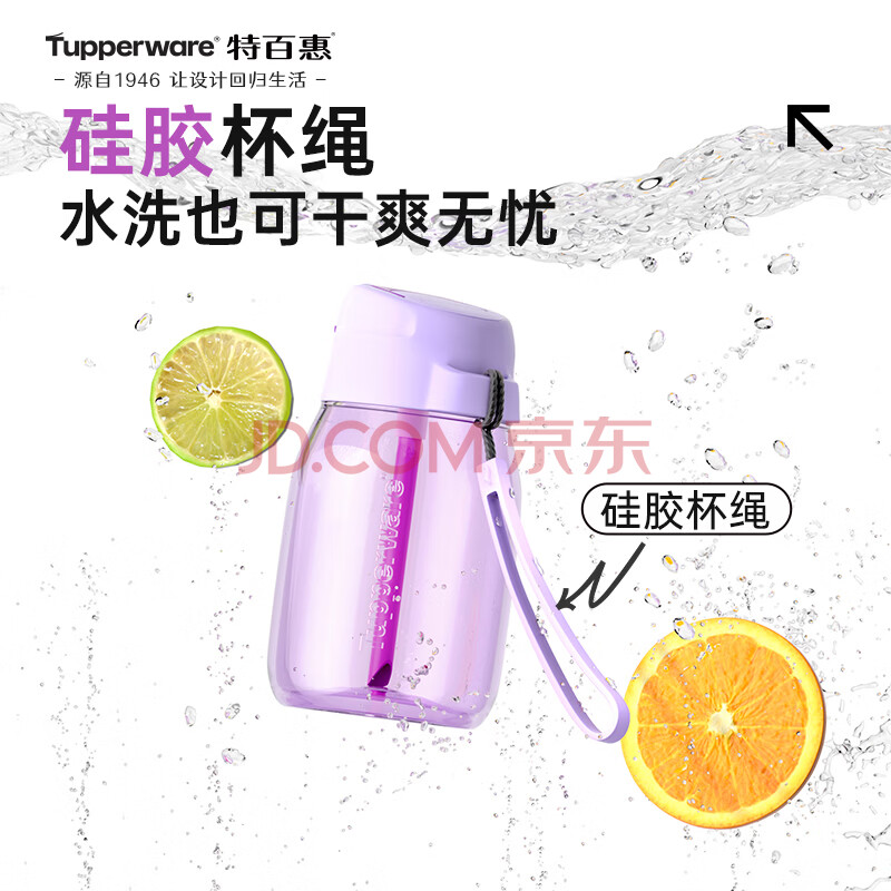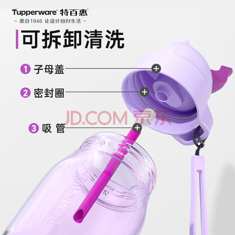 商品相册:特百惠(Tupperware)CC企鹅350ML塑料杯夏季男女学生儿童水杯子便携带吸管 冰沙紫第