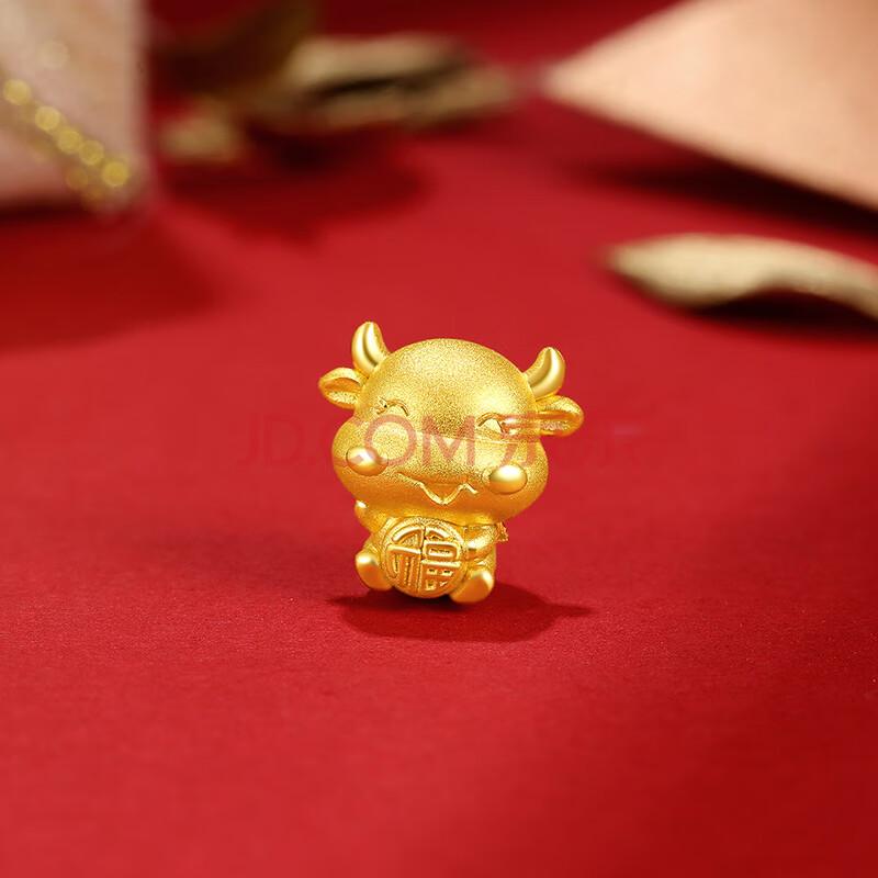 商品相册:周六福3D硬金足金黄金转运珠女福气牛生肖牛生日礼物AD166117 约1g第