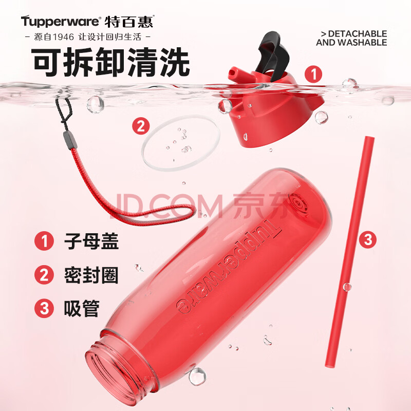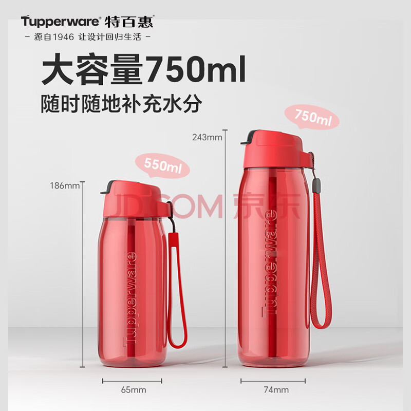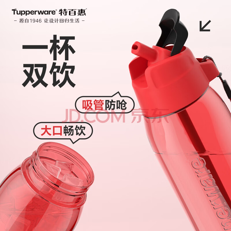 商品相册:特百惠(Tupperware)乐动750ml男女士学生大容量泡茶杯运动塑料水杯子带吸管 火艳红第