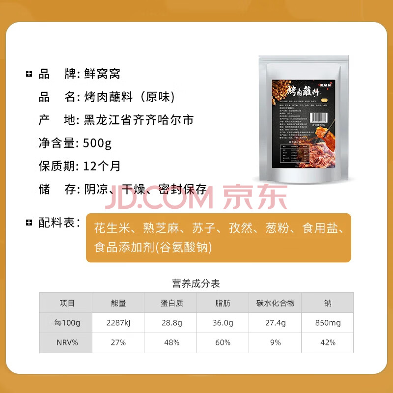 商品相册:鲜窝窝 原味烤肉蘸料500g 东北烧烤齐齐哈尔烤肉 五香花生碎火锅撒料第