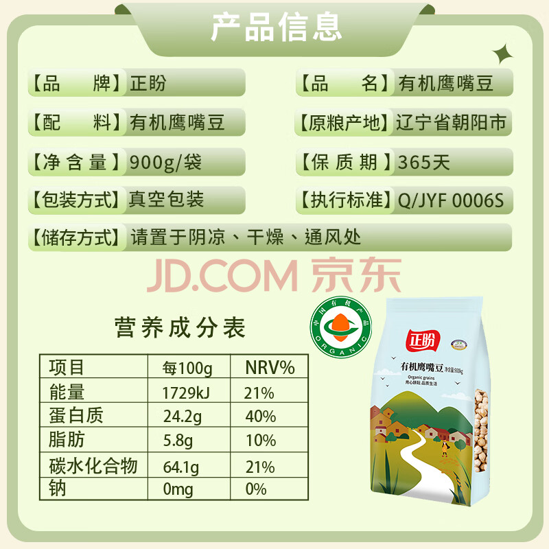 商品相册:正盼 有机鹰嘴豆1.8斤/袋 五谷杂粮 粗粮 搭藜麦 沙拉 打豆浆第