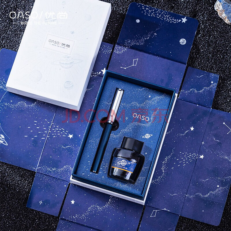 商品相册:【开学必备】优尚(OASO)钢笔高端星空TB826墨水礼盒学生文具套装中性签字笔蓝色空间铱金明尖墨水笔礼盒第