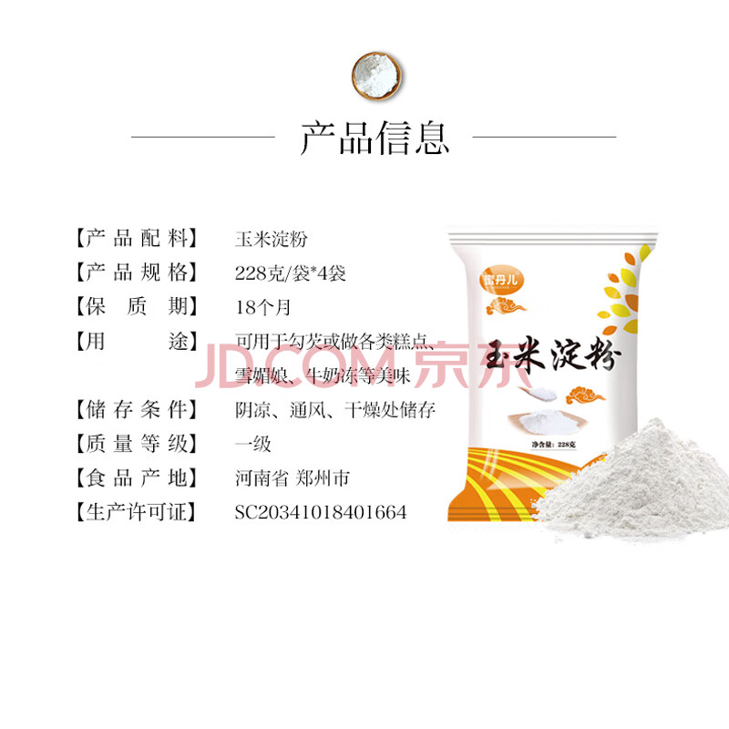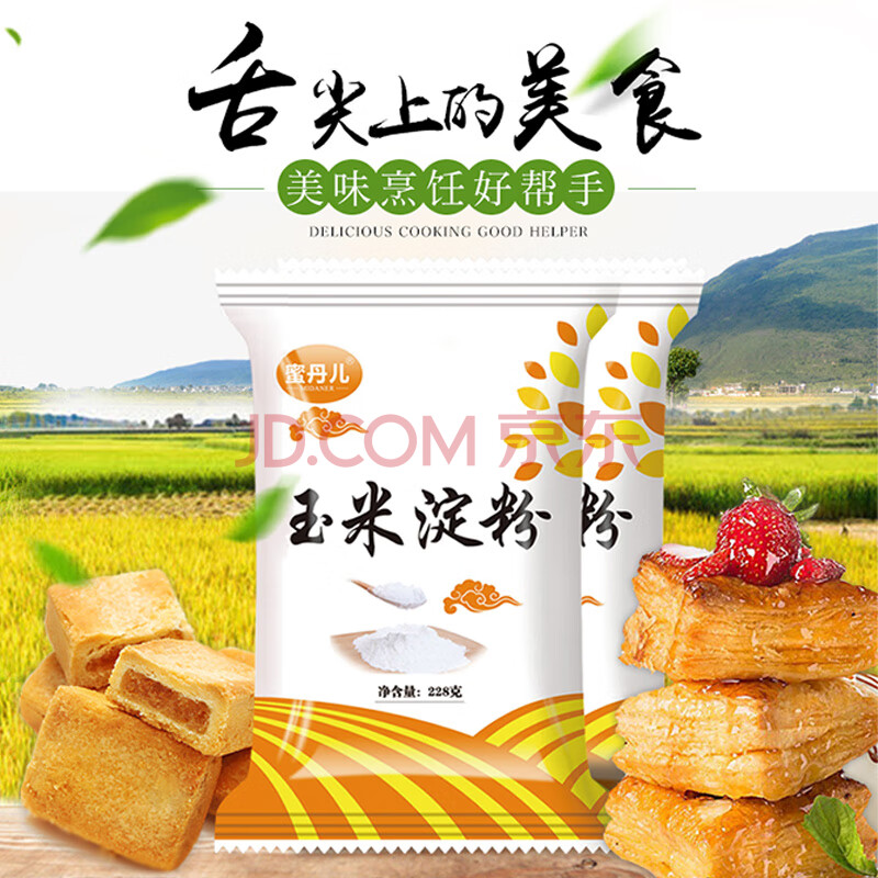 商品相册:蜜丹儿玉米淀粉4袋*228g 食用生粉淀粉粟粉做蛋糕饼干西点烘焙原料第1张/共7