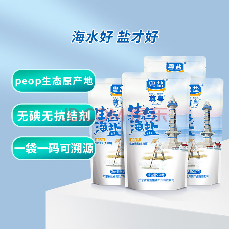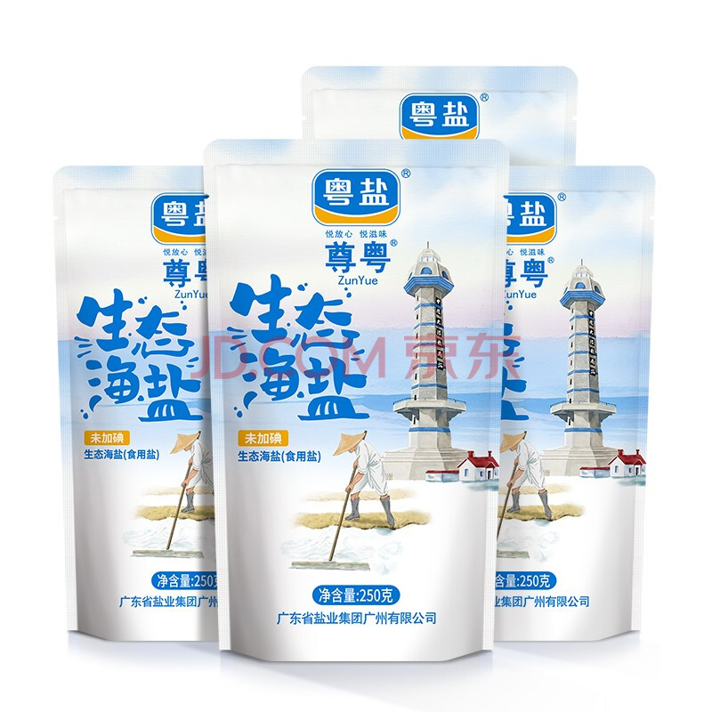 商品相册:粤盐生态海盐250g*4 无碘盐 食用盐无抗结剂0添加 富含多种微量元素第