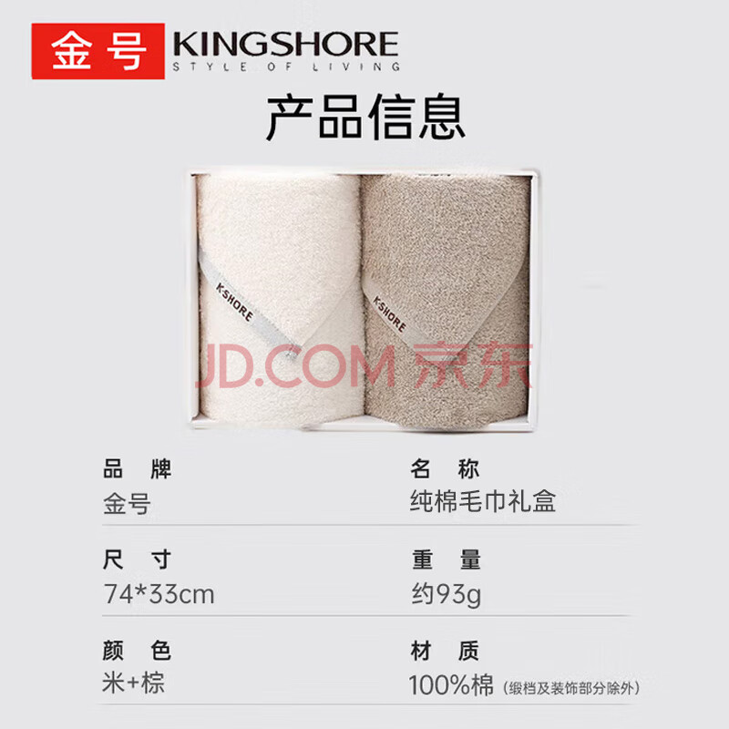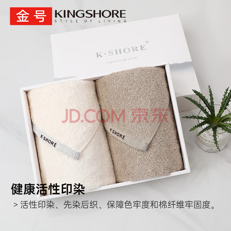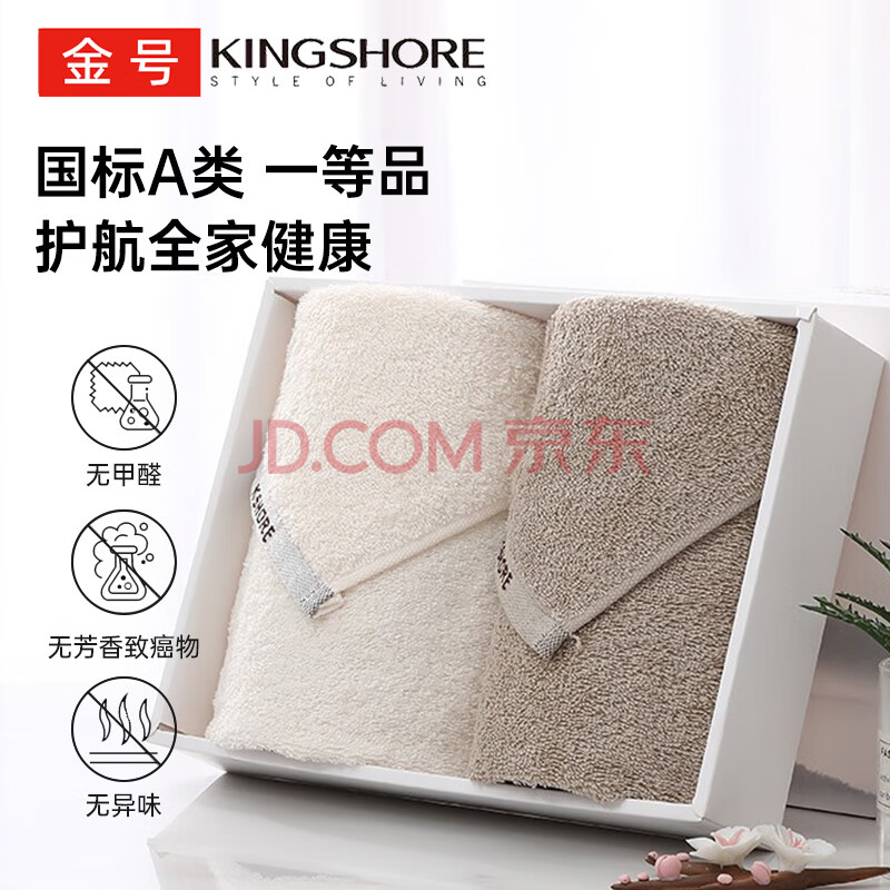 商品相册:金号毛巾礼盒 A类纯棉毛巾礼盒 纯色毛巾吸水毛巾套装 米+棕2条第