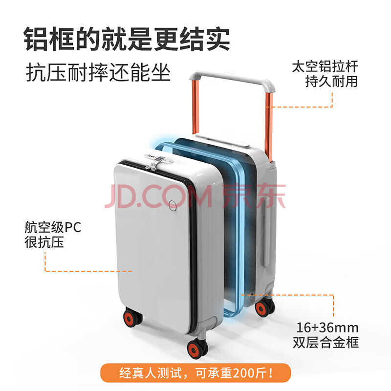 商品相册:米熙前开盖行李箱宽拉杆箱子铝框箱男20英寸商务登机箱女密码箱大容量第